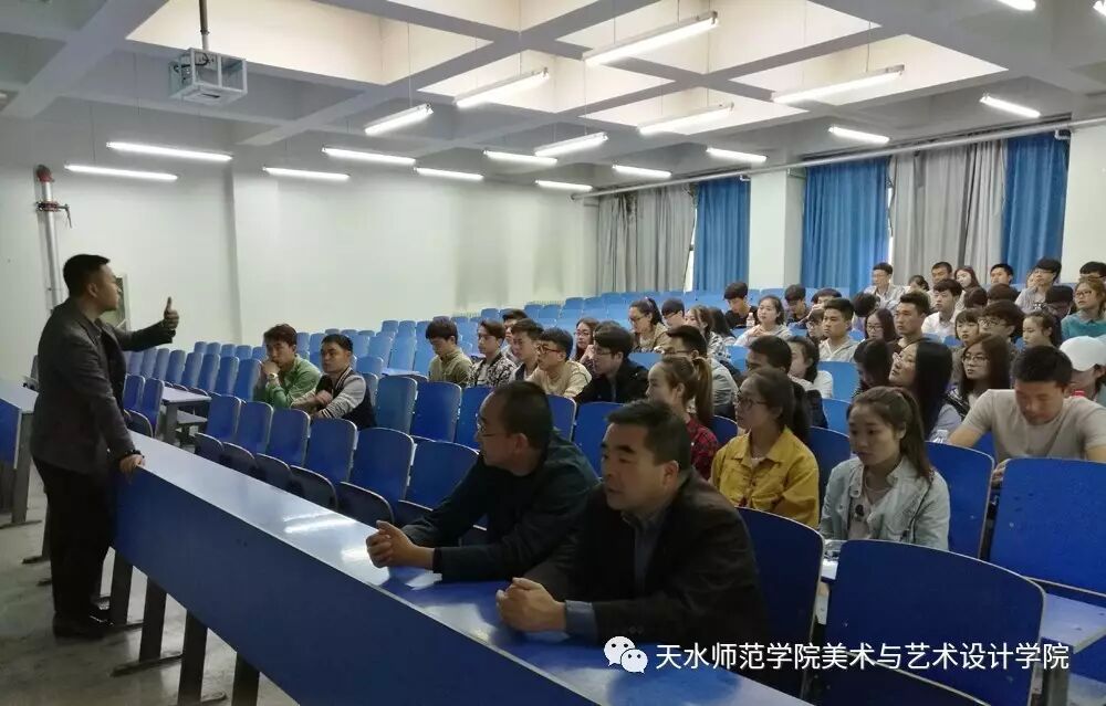 4月24日我院在艺术楼603教室举办就业创业报告会,报告会由我院2012届美术学优秀毕业生任伟(现为西安九鼎宜居装饰装修工程有限公司总经理、西安油画研究会会员)主讲,学院党总支书记刘明辉、艺术馆馆长刘晓毅、学院辅导员赵文博以及14、15级各专业专业同学共计90余人参加了本次报告会。